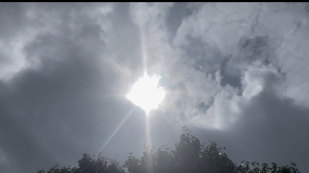 Incredible afternoon! The chemtrails blew away leaving the real clouds to dance with the sun. Grateful.
