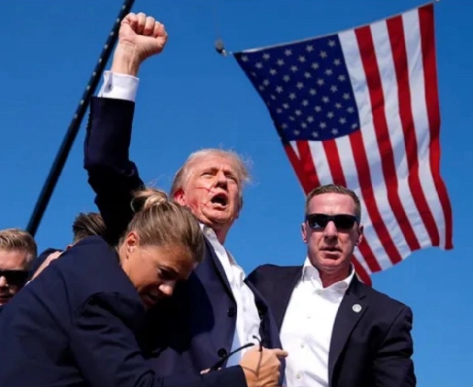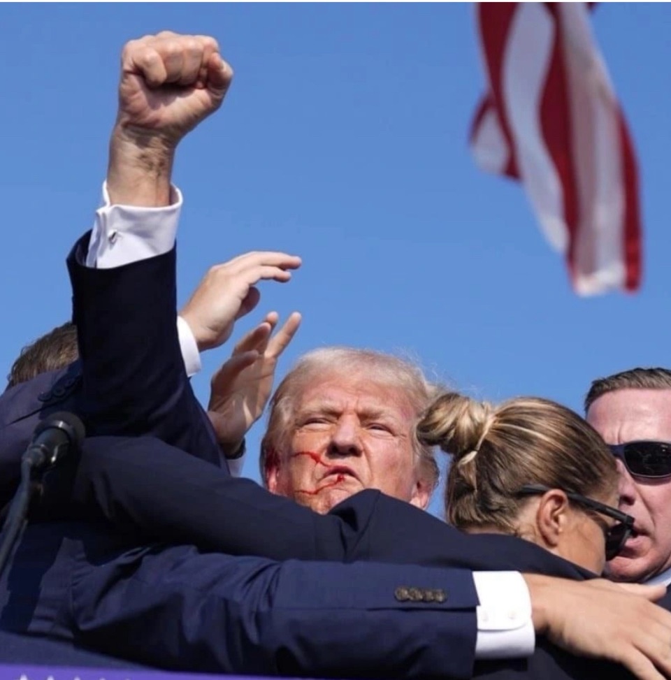 2) Fortunately, it only hit his ear and he stood up like the champion he is with a raised fist to rally Americans, saying “Fight! Fight! Fight!”