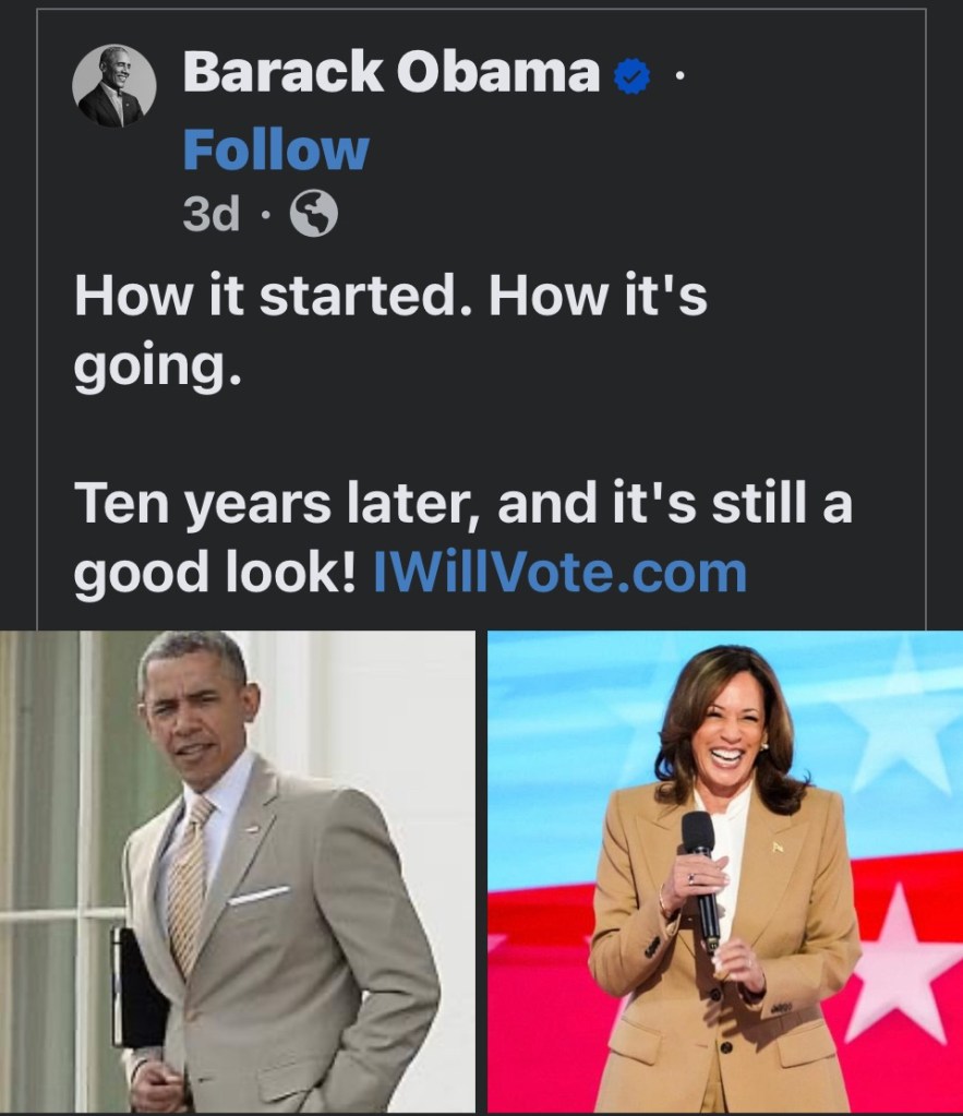 And here he is coming back around as Kamala Harris, Obama 4.